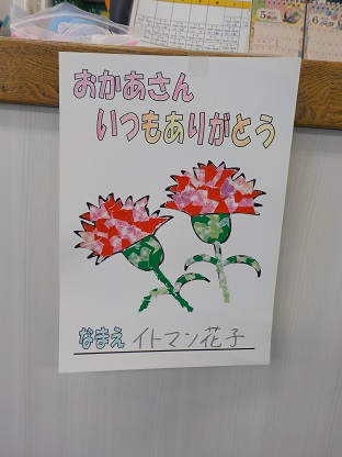 工作は、親子で力を合わせてカーネーションの絵をつくりました