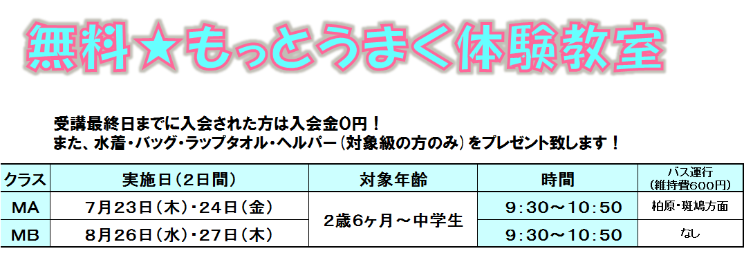 無料もっとうまく体験教室のタイムテーブルはこちらから♪