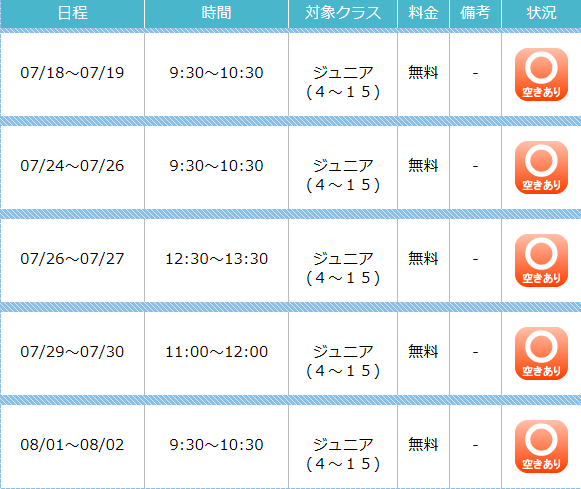 定員間近の期間もございますので、お申込みご希望の方はお早めにお申込みください