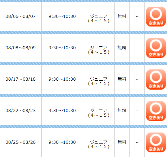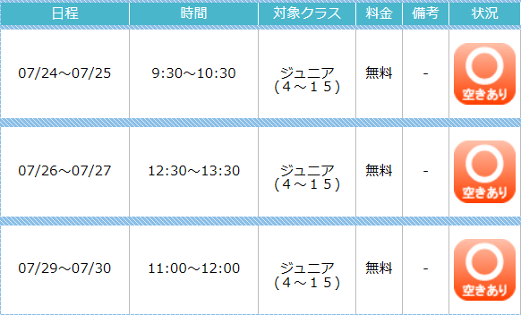 1〜2の基礎動作の習得に限られます。しかしながら、当社では短期教室用の設定級を設けており、
