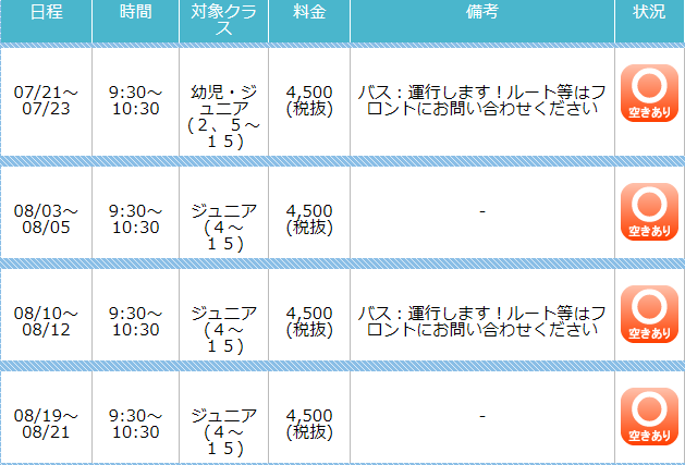 定員間近の期間もございますので、お申込みご希望の方はお早めにお申込みください