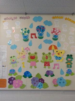 梅雨の季節なのでカエルさんやアジサイをいっぱいにしましたよ