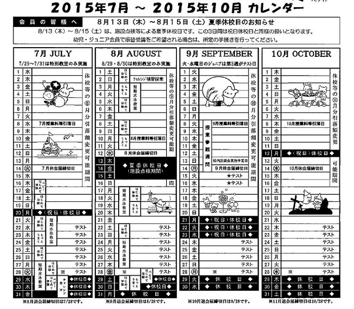 お待たせいたしました! 2015年7月〜10月までのカレンダーです! (画像をクリックして拡大)