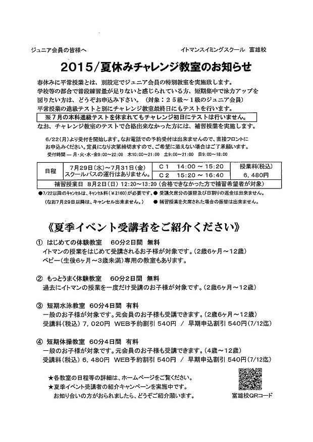 お申し込みはフロントまで!