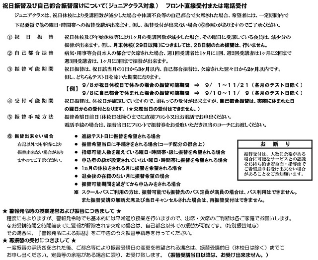 よく質問があるのが、自己都合とスクール都合の振替回数ですが、