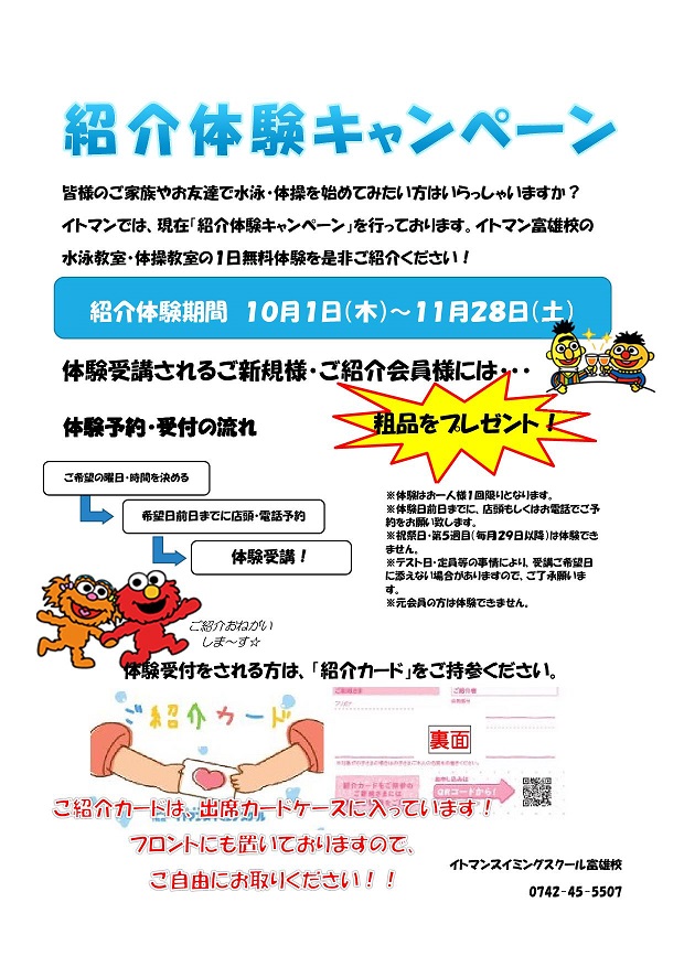 イトマンの一日無料体験を紹介した会員さまにも、ご新規さまにも粗品をプレゼント!!