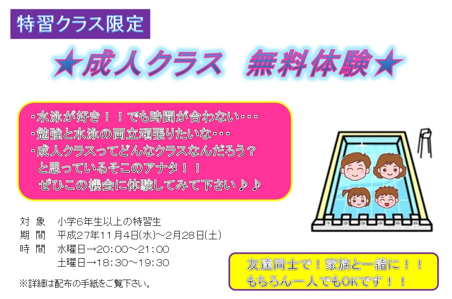 特習クラスの皆様へ〜成人クラス体験のお知らせ〜