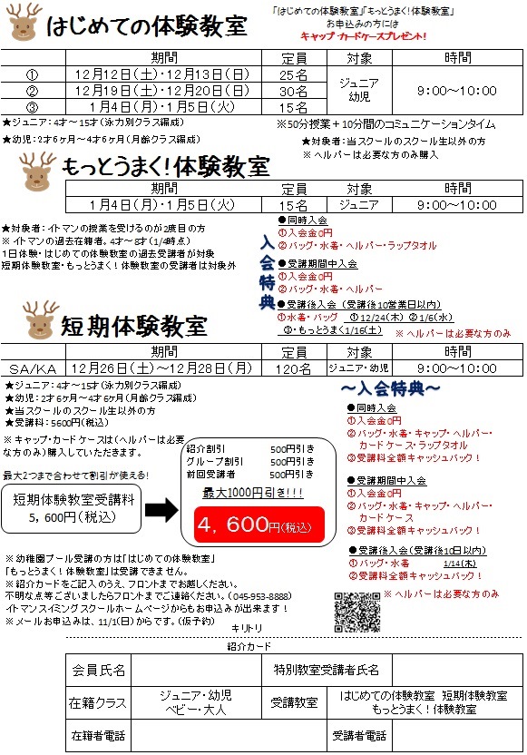 「〜冬休み特別教室〜おともだち紹介キャンペーン」の