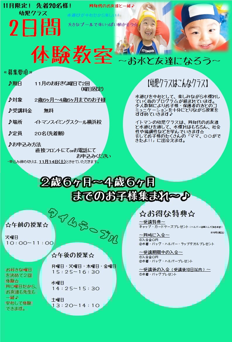 幼児クラス 2日間体験会やります♪