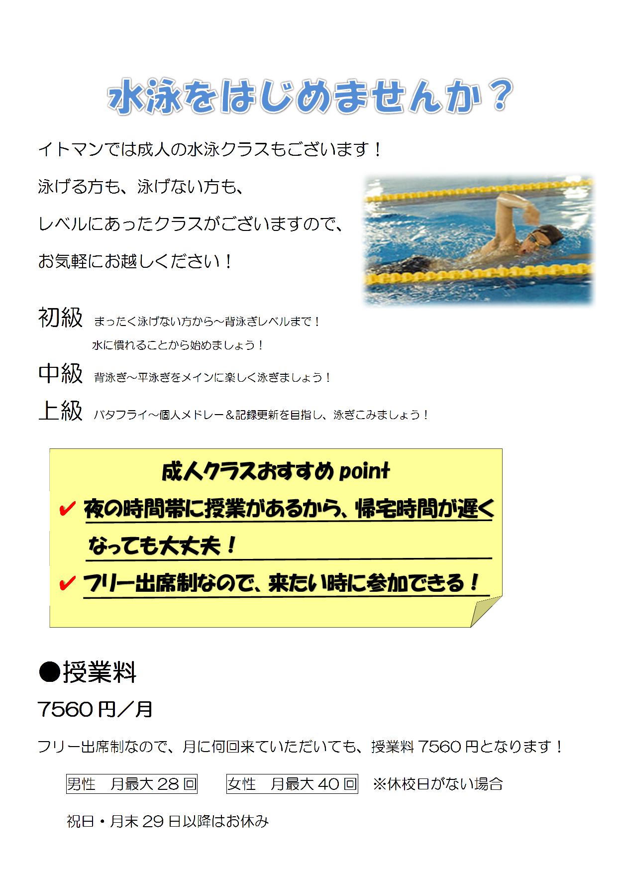 大人クラスのスイミング!