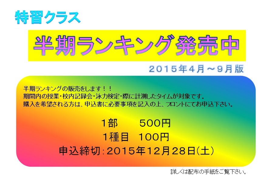 特習クラスの皆様へ〜半期ランキング販売のお知らせ〜