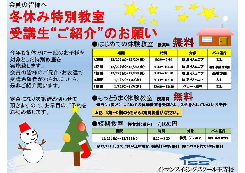 冬休み特別教室 受講生をご紹介ください(*^。^*)