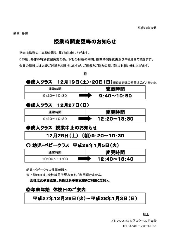 【午前ベビー・幼児クラス】本日の授業時間は12:40〜となります