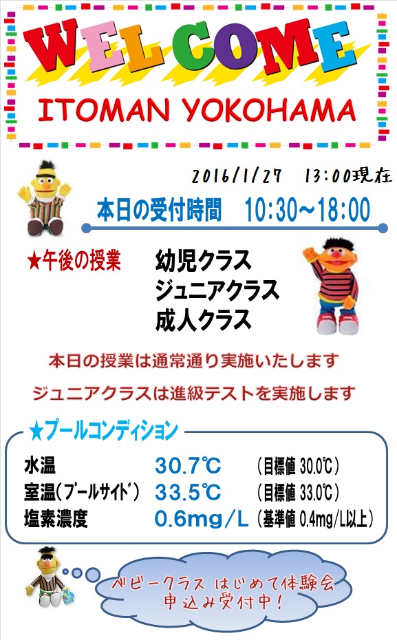 本日の営業情報【2016.1.27 PM】