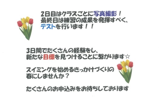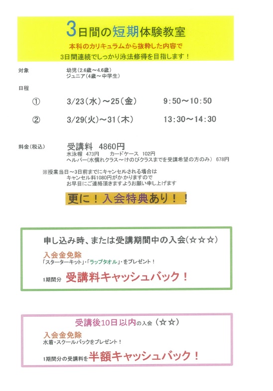 春の特別教室開催のお知らせその3 〜短期体験教室〜
