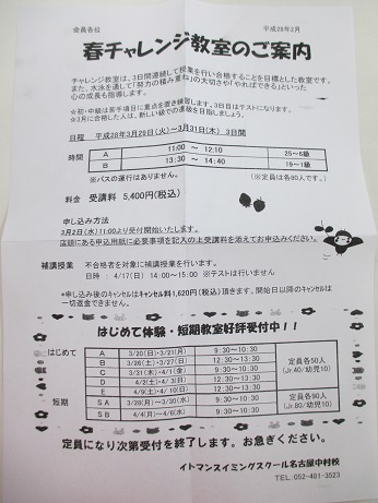 ジュニアクラスの会員様に春のチャレンジ教室のお知らせです!