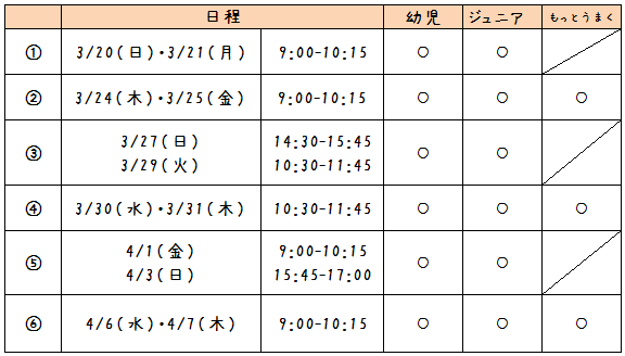 春のはじめて体験教室の申し込み受付中です!!