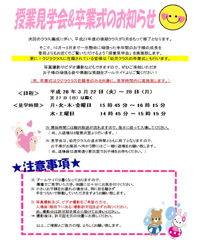 ぜひ、お子様の成長や素敵な笑顔をプールサイドよりご覧ください ![]()