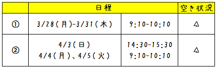 春の短期教室、定員間近となっております!