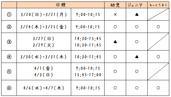春のはじめて体験教室、定員間近のクラスが増えてきました!