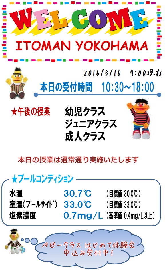 本日の営業情報【2016.3.16】