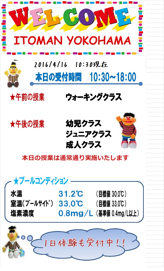 本日の営業状況【2016.4.16AM】