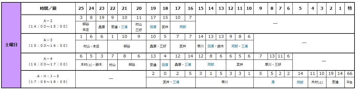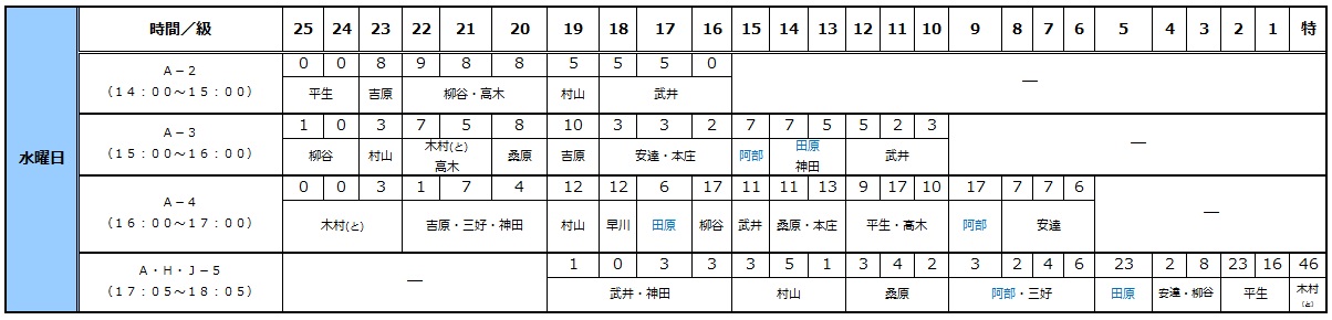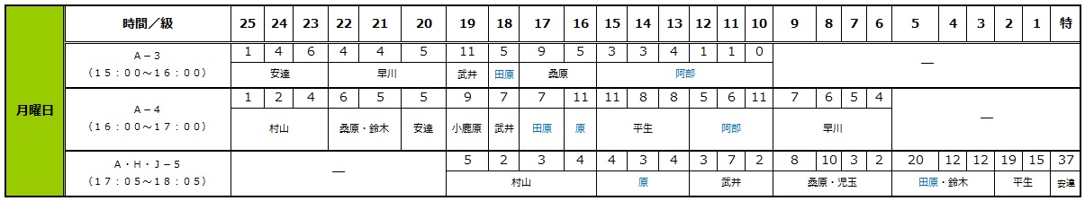 それぞれの曜日をクリックすると、表が出ます