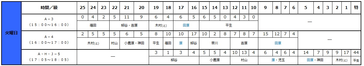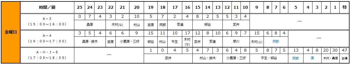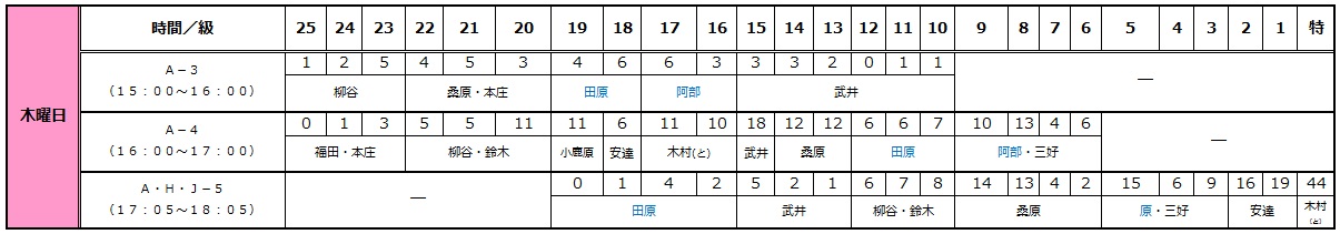 振替やクラス変更の際などにご活用ください