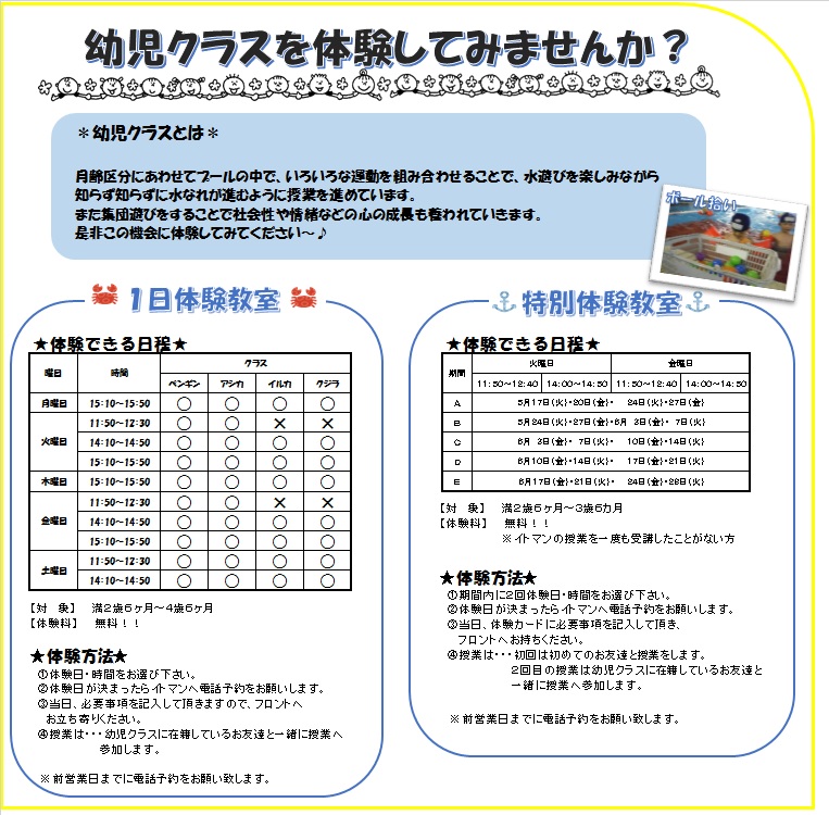 幼児クラス体験してみませんか?
