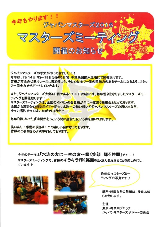 マスターズミーティング 申込開始!!