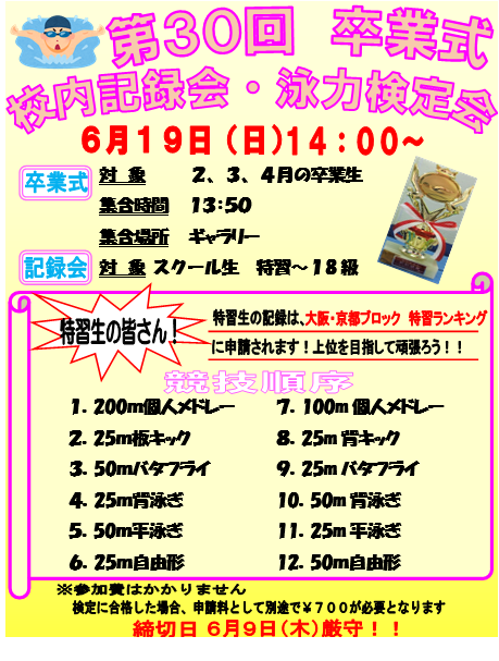 第30回 校内記録会兼泳力検定会