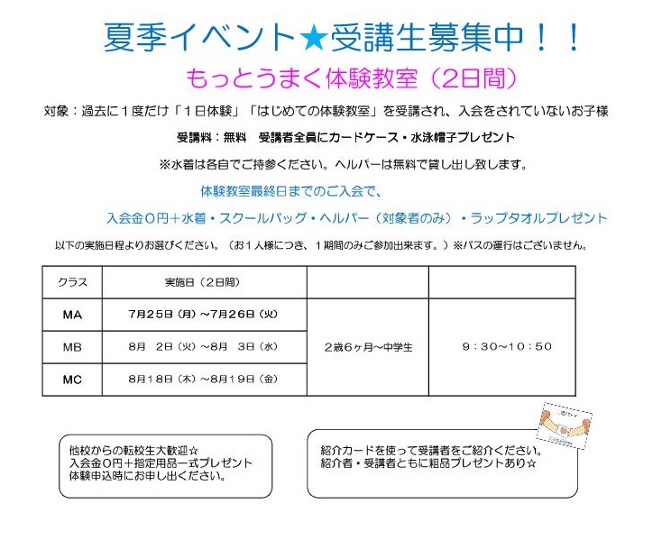 もっとうまく体験教室☆6/1受付開始!