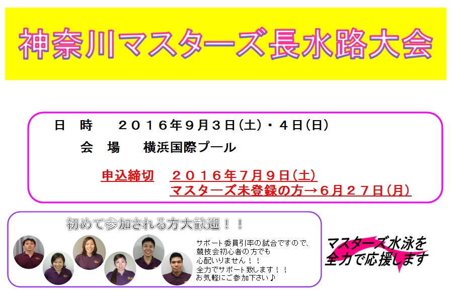神奈川マスターズ長水路大会 申込開始!!