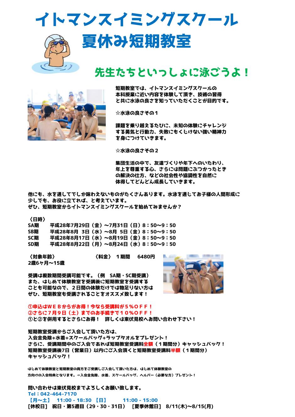 夏季短期教室のお知らせ!