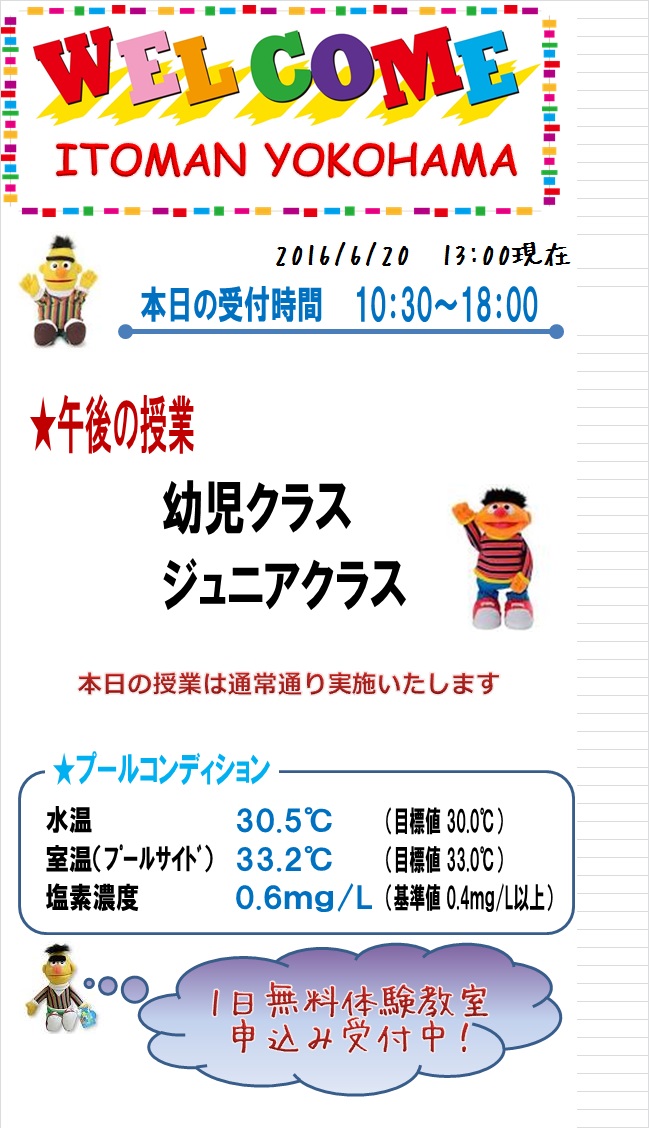 本日の営業状況【2016.6.20PM】