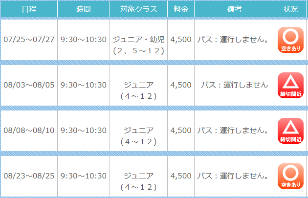 1〜2の基礎動作の習得に限られます。しかしながら、当社では短期教室用の設定級を設けており、