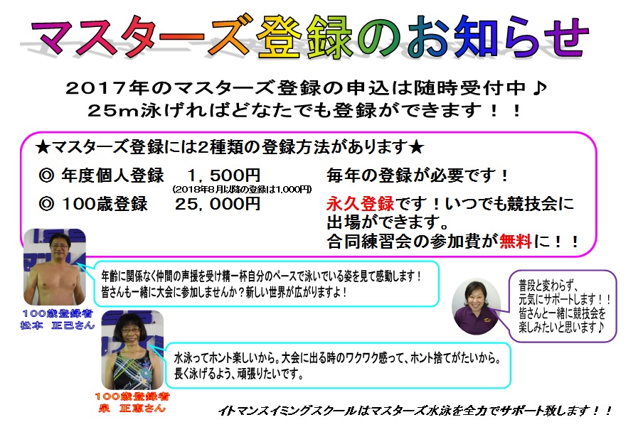 ★2017年度 マスターズ登録のお知らせ★