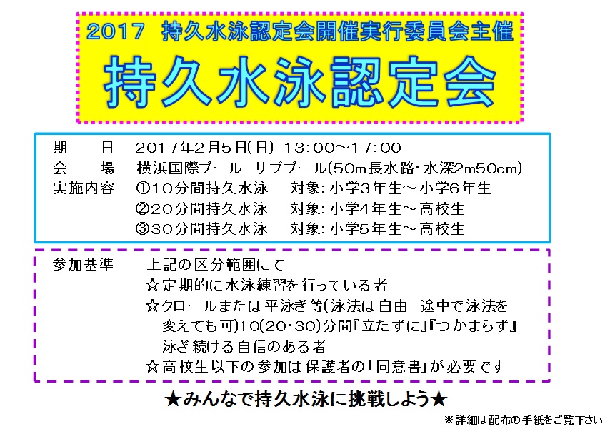 持久水泳認定会のお知らせ☆2級・1級・特習版