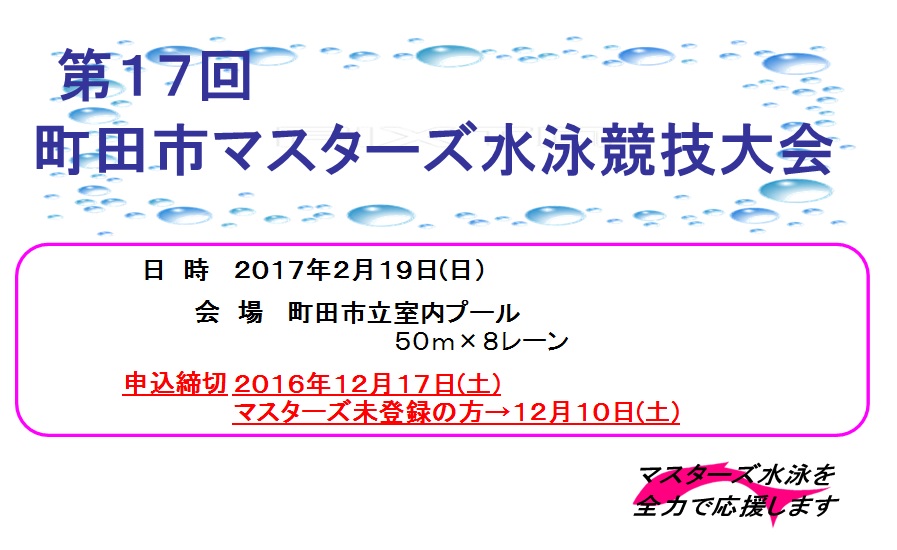 町田マスターズ 申込のお知らせ
