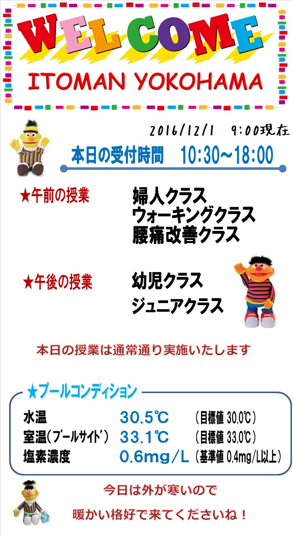 本日の営業状況【2016.12.1AM】