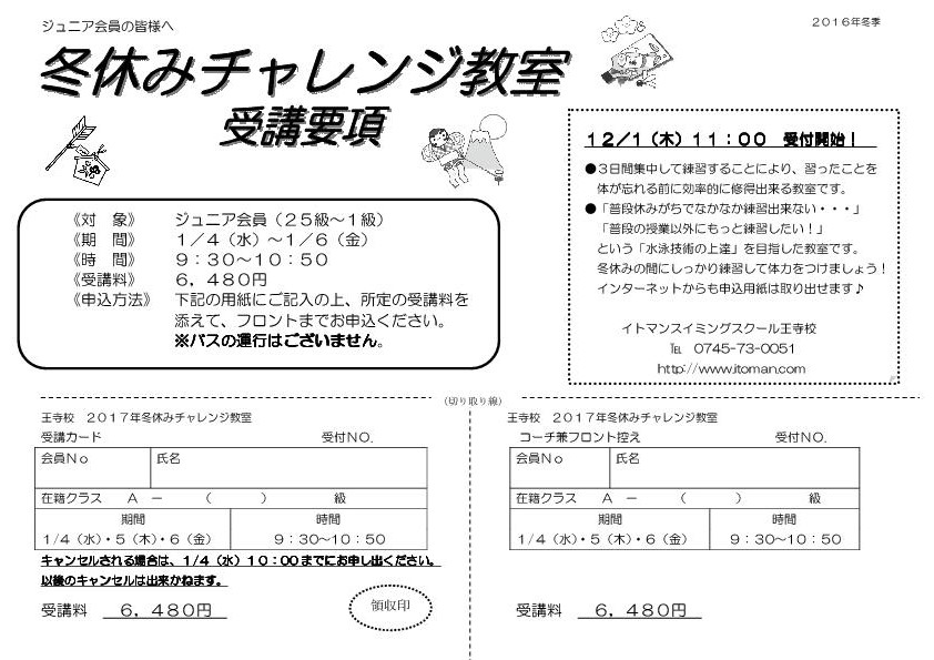 【申込方法】配布させていただいている申込用紙をご記入の上、受講料を添えて、