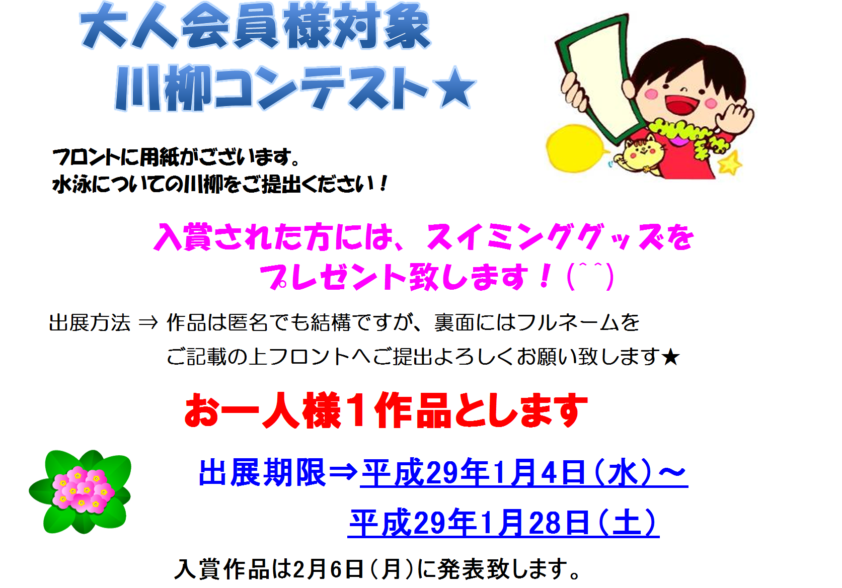 水泳にまつわる川柳をお待ちしています☆