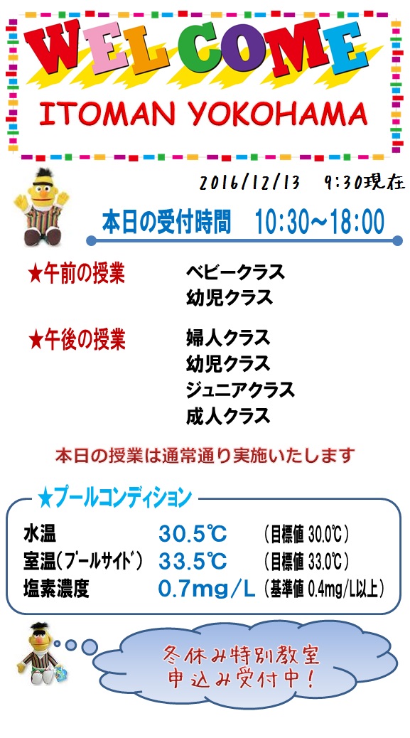 本日の営業情報【2016.12.13】