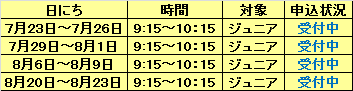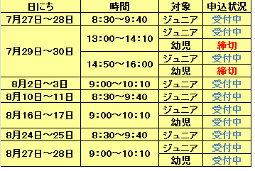 夏休み特別教室の申込状況(6月11日現在)は以下の通りです。