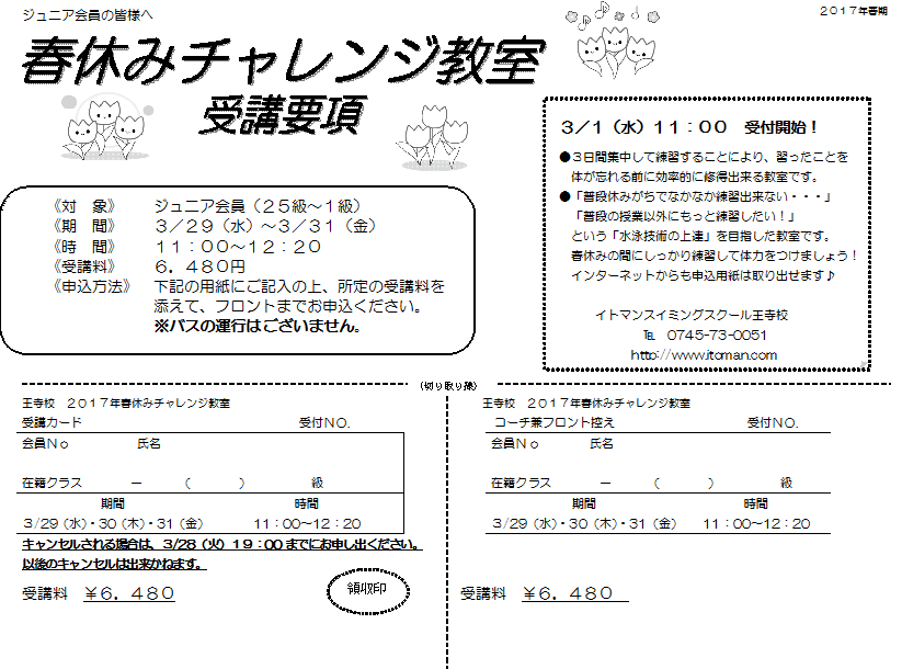 【ジュニアクラス】チャレンジ教室申し込み受付中☆