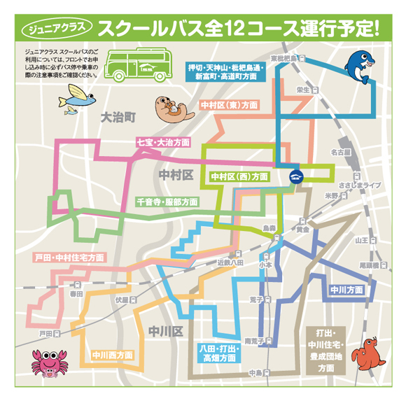 (今回は七宝・大治コース 中村区(東)コース 戸田・中村住宅コースで運行します。