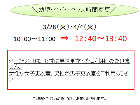 【ベビー・幼児クラス】時間変更について