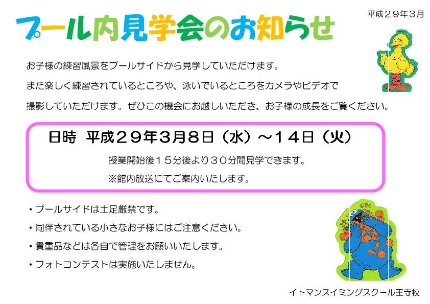 明日からプール内見学会です☆