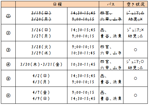 春の無料体験教室、定員になるクラスが増えてきました。