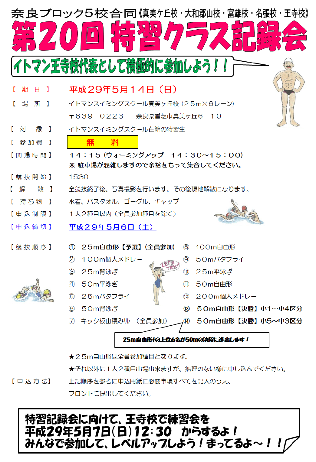 特習練習会は、特習記録会に参加される方に限ります、!